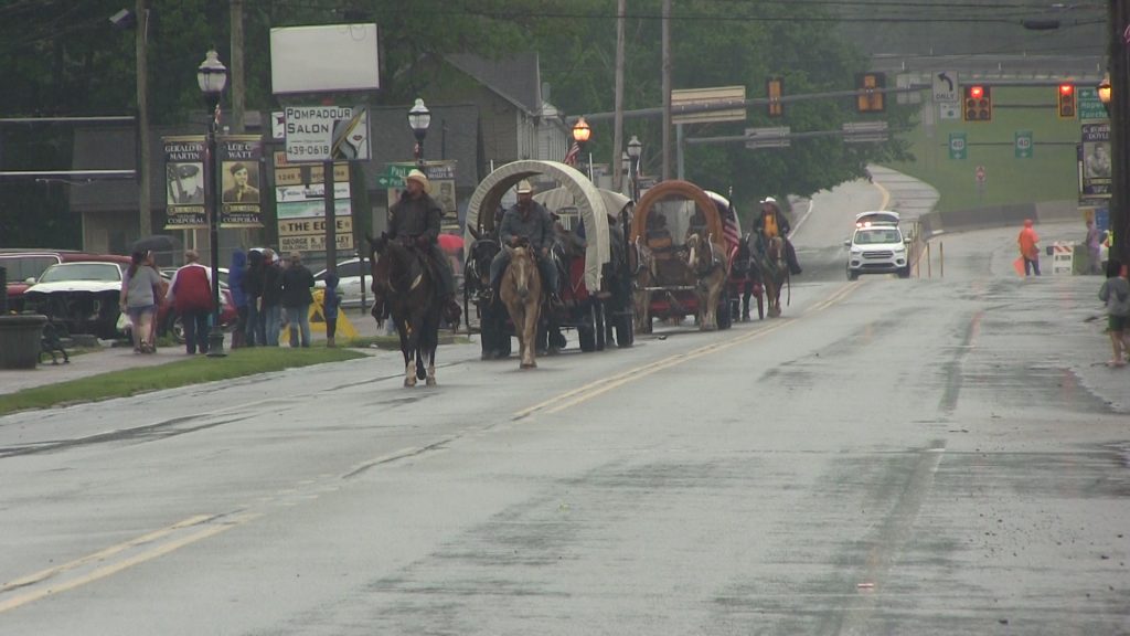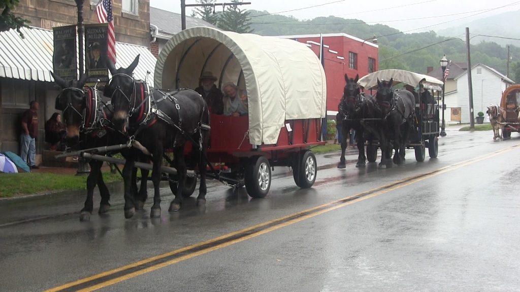 Rain on Saturday couldn’t dampen the spirits of visitors, re-enactors and vendors gathered at Nemacolin Castle in Brownsville nor of those on the wagon train as it passed through Hopwood, during the annual National Road Festival.