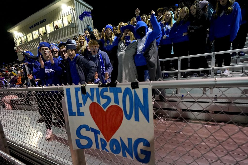Lewiston High School students cheer during a football game against Edward Little High School, Wednesday, Nov. 1, 2023, in Lewiston, Maine. Locals seek a return to normalcy after a mass shooting on Oct. 25.
