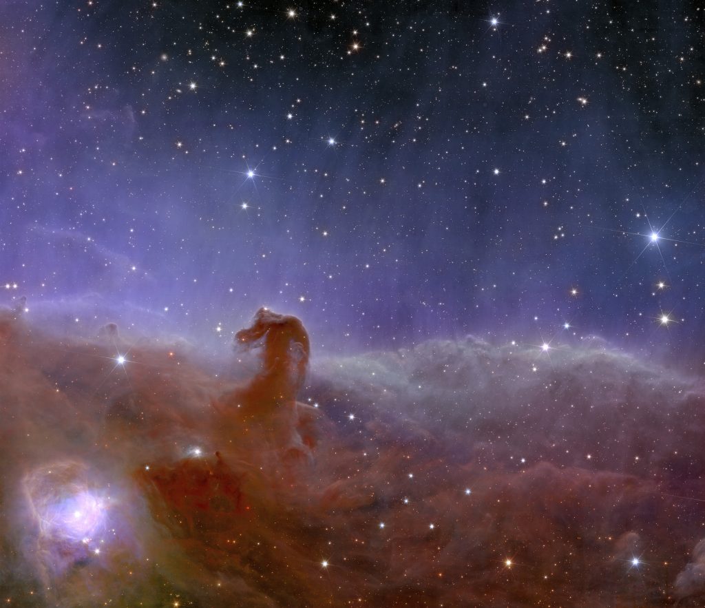 This image provided by the European Space Agency shows EuclidĢƵ panoramic view of the Horsehead Nebula. The European Space Agency released EuclidĢƵ first photos Tuesday, Nov. 7, 2023 four months after the spacecraft was launched from Florida to study the dark universe, invisible yet everywhere. Euclid will observe billions of galaxies, creating the largest 3D map ever made of the cosmos, in order to better understand the dark energy and matter that make up 95 percent of the universe.