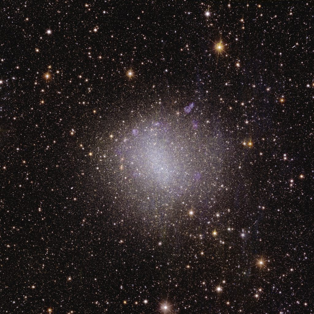 This image provided by the European Space Agency shows EuclidĢƵ view of the irregular dwarf galaxy called NGC 6822. The European Space Agency released EuclidĢƵ first photos Tuesday, Nov. 7, 2023 four months after the spacecraft was launched from Florida to study the dark universe, invisible yet everywhere. Euclid will observe billions of galaxies, creating the largest 3D map ever made of the cosmos, in order to better understand the dark energy and matter that make up 95 percent of the universe.