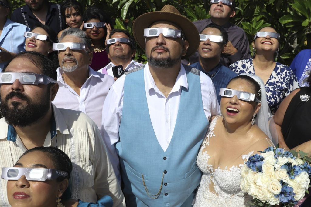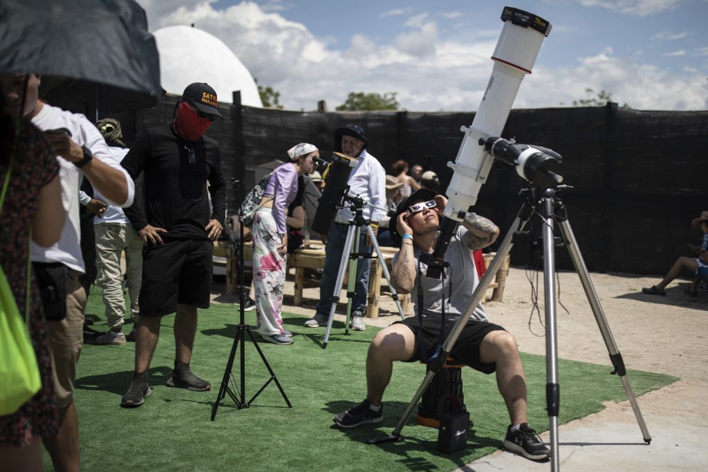 Hundreds of people filed into the planetarium in the Caribbean resort city of Cancún to watch the eclipse. Some peered through box projectors, while others looked through telescopes and special glasses.
