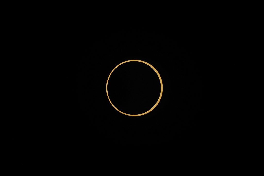 Unlike a total solar eclipse, the moon doesn’t completely cover the sun during a ring of fire eclipse. When the moon lines up between Earth and the sun, it leaves a bright, blazing border.