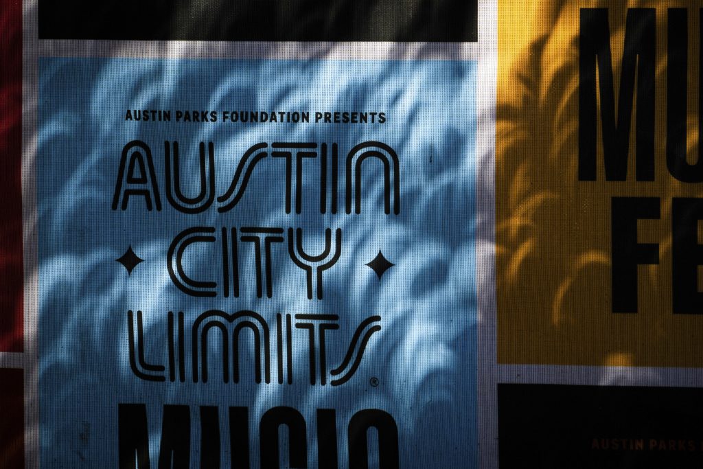 Crescent shaped shadows are cast on signs as the annular eclipse passes on the second day of the second weekend of Austin City Limits Music Festival, Saturday, Oct. 14, 2023.