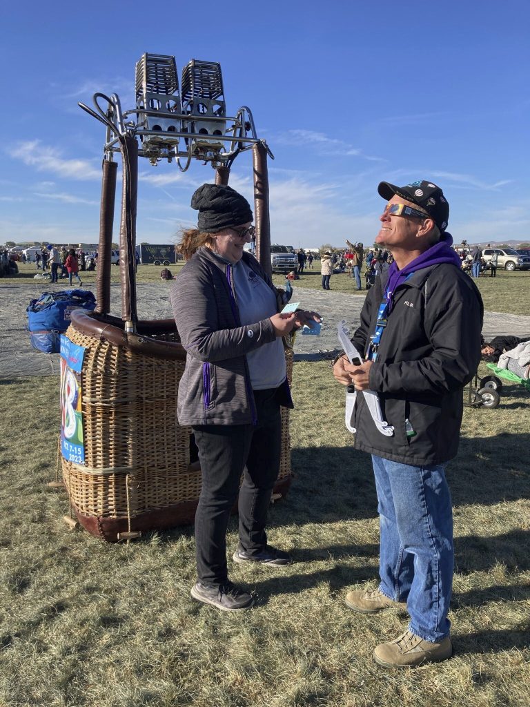 “ItĢƵ very exciting to be here and have the convergence of our love of flying with something very natural like an eclipse,” said Allan Hahn, a balloon pilot from Aurora, Colorado.