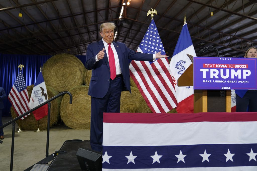 Trump, campaigning in Iowa, vows to ban Gaza refugees from US if he wins a second term