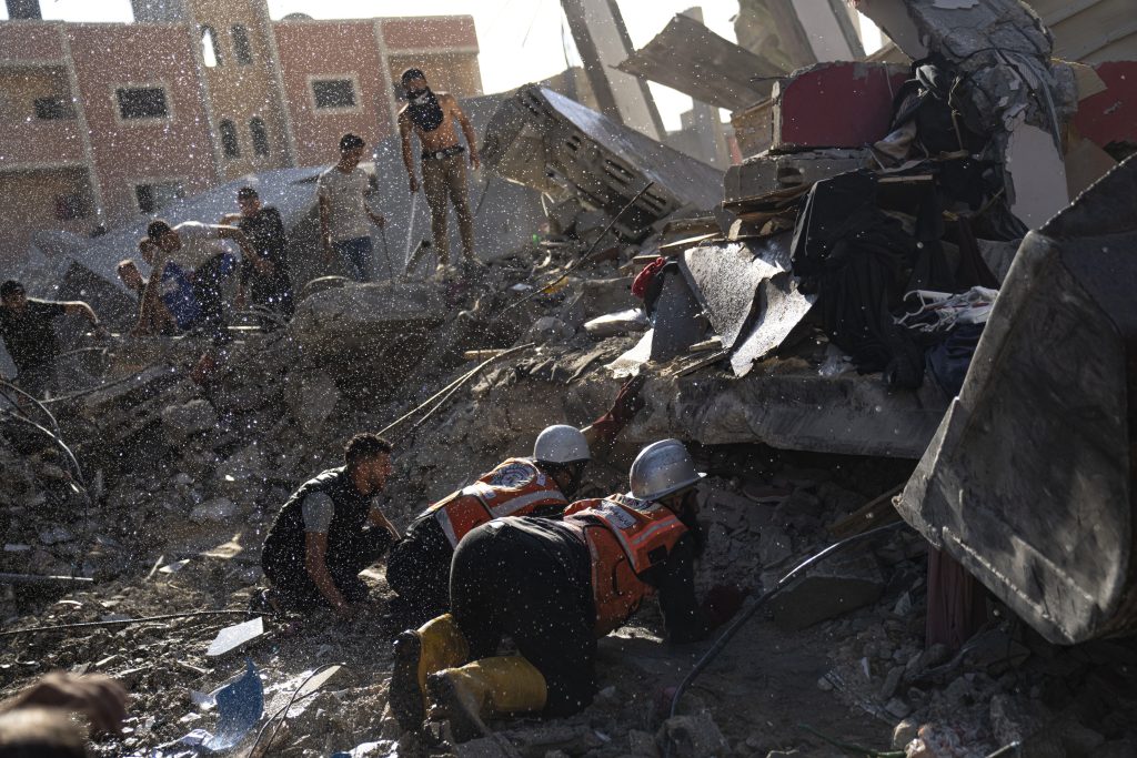 In Gaza City, Israeli airstrikes also hit the house of Hamas’ top political official, Ismail Haniyeh, killing at least 14 people. Haniyeh is based in Doha, Qatar, but his family lives in Gaza City. The Hamas media office did not immediately identify those killed.