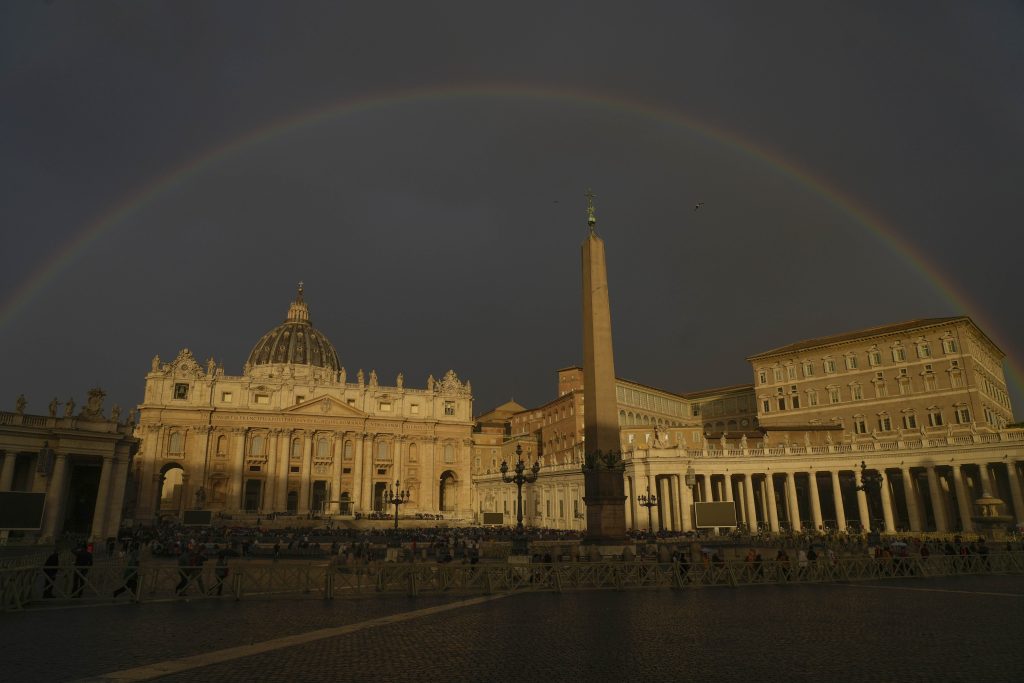 A white Bengal tiger approaching a pumpkin at the Rome Zoo, and a rainbow shines over St. PeterĢƵ Square at the Vatican. A procession takes place in Bucharest, Romania, and a crowd follow a bullfighting competition in western Kenya. In sports, the Rugby World Cup in France is coming to an end.
