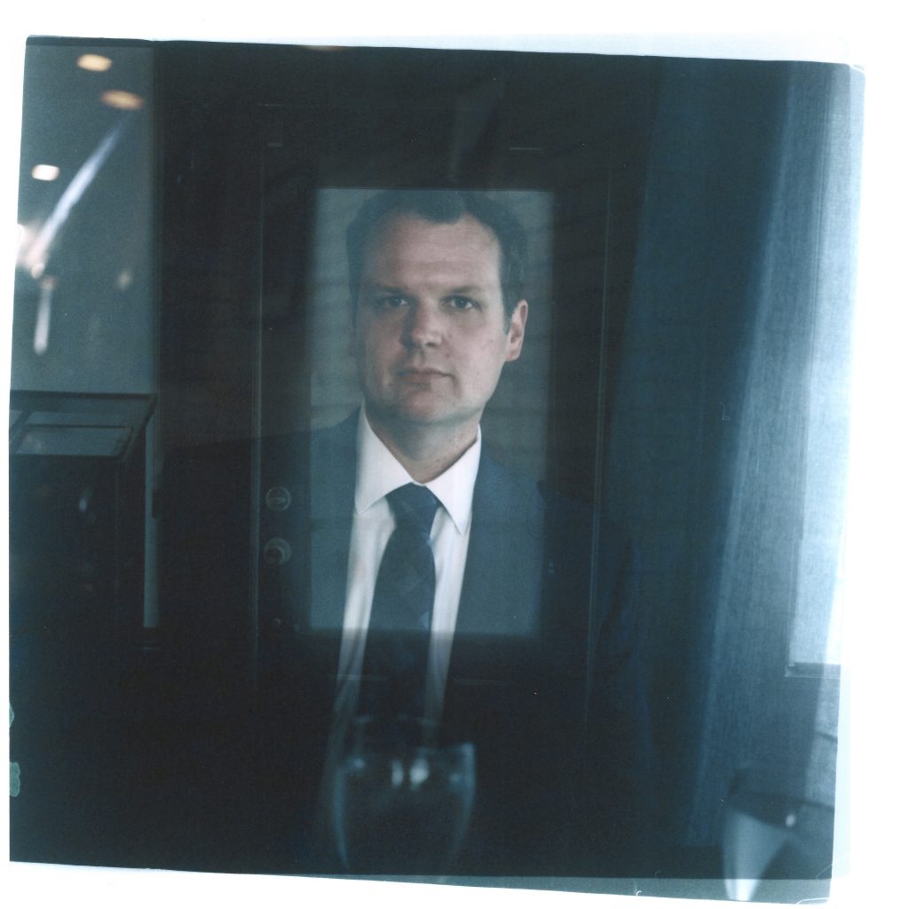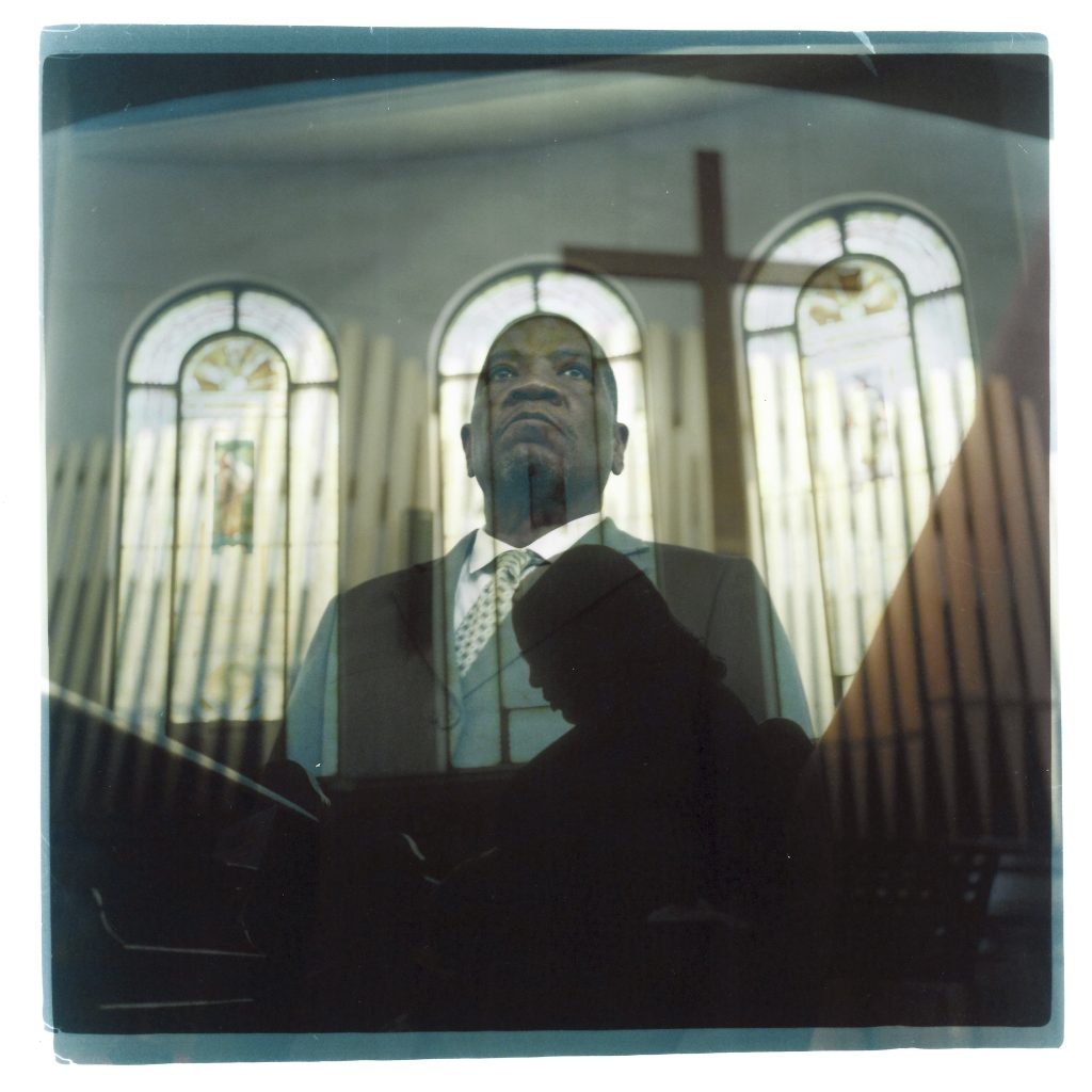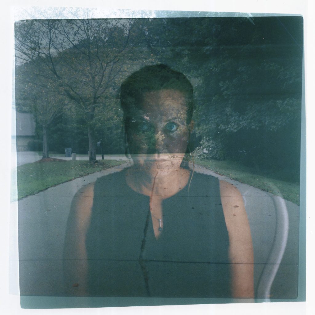 This series of film photographs is similarly layered, each image a combination of two separate clicks of the shutter, carefully double-exposed by hand in the pitch-black of a traditional darkroom. One picture is placed atop the other and fused to create a single image.