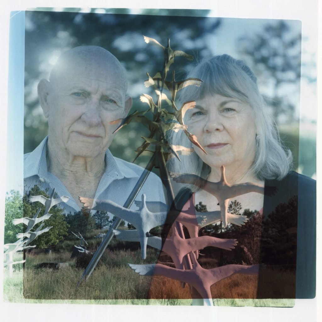 In this double exposure darkroom print made from two film negatives, a portrait of Lonnie, left, and Sandy Phillips from Tuesday, Sept. 5, 2023, is layered with a photo of the memorial to the victims of the 2012 mass shooting at a movie theater in which Jessica Ghawi, Sandy's daughter and Lonnie's stepdaughter, was killed in Aurora, Colo. Suffering through their own personal loss after the mass shooting, the couple set out to help other parents like them, traveling to shooting sites around the country. The trip continued for a decade. They'd found themselves in Newtown or Parkland or Uvalde or whatever fresh hell had just been put on the map. They had lessons to share, advice that could only be amassed by someone who'd lived through the same. So, Sandy would clasp the hands of the mourners and ask about the ones they'd been robbed of and mouth words that could surprise her as much as those who listened. "You will," she said confidently, "find joy again." Sometimes, Jessi visits her mother in her dreams, usually appearing as a toddler. When she awakes, she'll squeeze her eyes closed and try and coax the dream to return. She begs for more. "Let me feel her touch me," she says. "Let me feel her hug me. Let me feel her kiss me on the cheek again. Let me hear her laugh again. Let me hear her high heels coming up the walkway." Let me, she wishes, be happy.