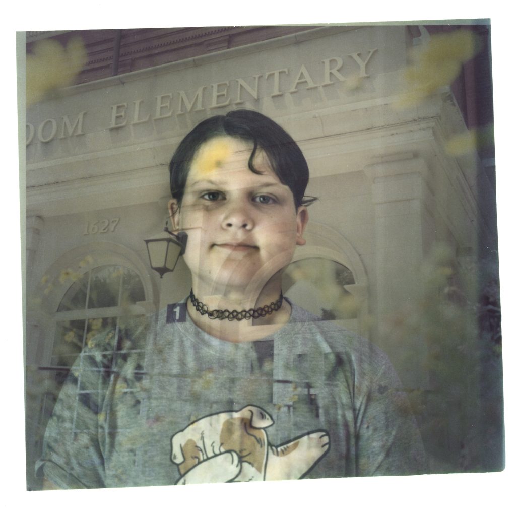 In this double exposure darkroom print made from two film negatives, a portrait of Sylvia Holm, 11, is layered with a photo of the elementary school she just graduated from in Louisville, Ky., Sunday, June 4, 2023. Holm's father was shot and survived one of the first school mass shootings to shatter the American consciousness a generation ago. When Sylvia started kindergarten, at the dinner table that fall, she announced that her class had learned a new drill. First her teacher locked the classroom door and turned off all the lights. Then she instructed the children to stay very quiet, "so the bad person wouldn't find them." When she turned seven, Sylvia heard her father's story for the first time during his speech on the steps of the federal courthouse in Louisville. She looked stricken, her eyes wide with fear. When Sylvia learned how close in age the children in Uvalde were to the friends around her, she started crying. Still, Sylvia says, if today's children are going to find ways to stop school shootings when they grow up, it was better to know. "When I was her age I would think, oh, the grownups are going to solve this. And here's she's telling us we're going to solve the problem," Kate says. But the expression on Sylvia's face remains stone serious. "Because the adults haven't done enough," she says.