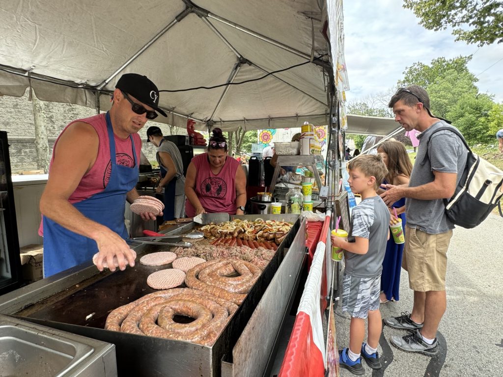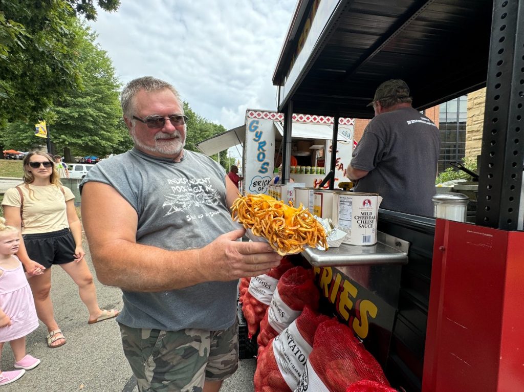 The skies were overcast, but as of late Monday afternoon, no rain had fallen in downtown Waynesburg, the site of the annual Rain Day Festival, held every year on July 29. A meteorologist at the National Weather Service in Pittsburgh said there was still a chance of rain in the evening, which would be welcome, as it has rained on 118 of the past 150 Rain Days, or roughly 80%, including last year. This yearĢƵ festival featured live entertainment throughout the day on two stages, arts and crafts booths, childrenĢƵ games, and contests – among them, umbrella decorating, store window decorating, and Baby Rain Day. “Wayne Drop,” the Rain Day mascot, spent the day high-fiving festival-goers and posing for pictures. The event also included the annual hat bet, which has grown from a simple wager into a much-anticipated part of the festivities, and has involved celebrities including Muhammed Ali, Mister Rogers, and Will Farrell. This year, Ryan Shazier took part in the bet. Bryn Lahew of Waynesburg Central High School was crowned 2024 Miss Rain Day. The night concluded with a drone show presented by Star Flight Drone Shows and sponsored by EQT.