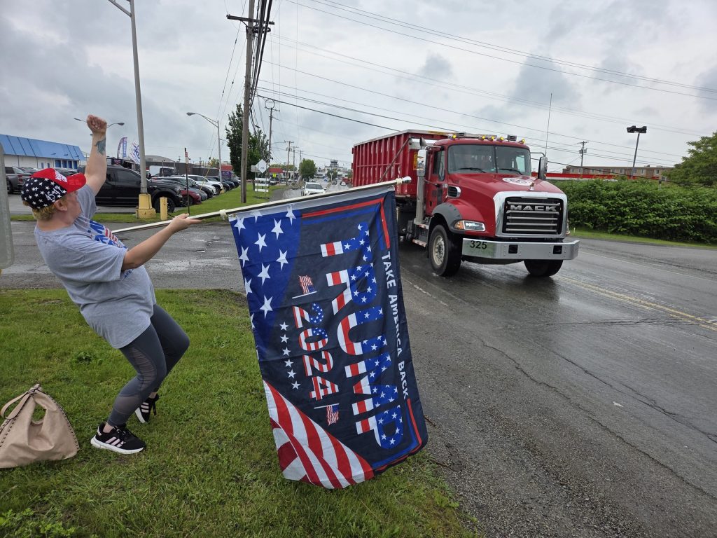 A few feet away, Heather Michaels of Munhall was standing on the side of Camp Hollow Road with a large Trump 2024 campaign flag waving at motorists and urging them to honk their horns as she awaited the presidentĢƵ motorcade to pass. She said her mother worked at the U.S. Steel plant in neighboring Clairton for 30 years, so the presidentĢƵ visit was “very personal” to her, and she hoped the partnership with Nippon would keep whatĢƵ left of the local industry intact.