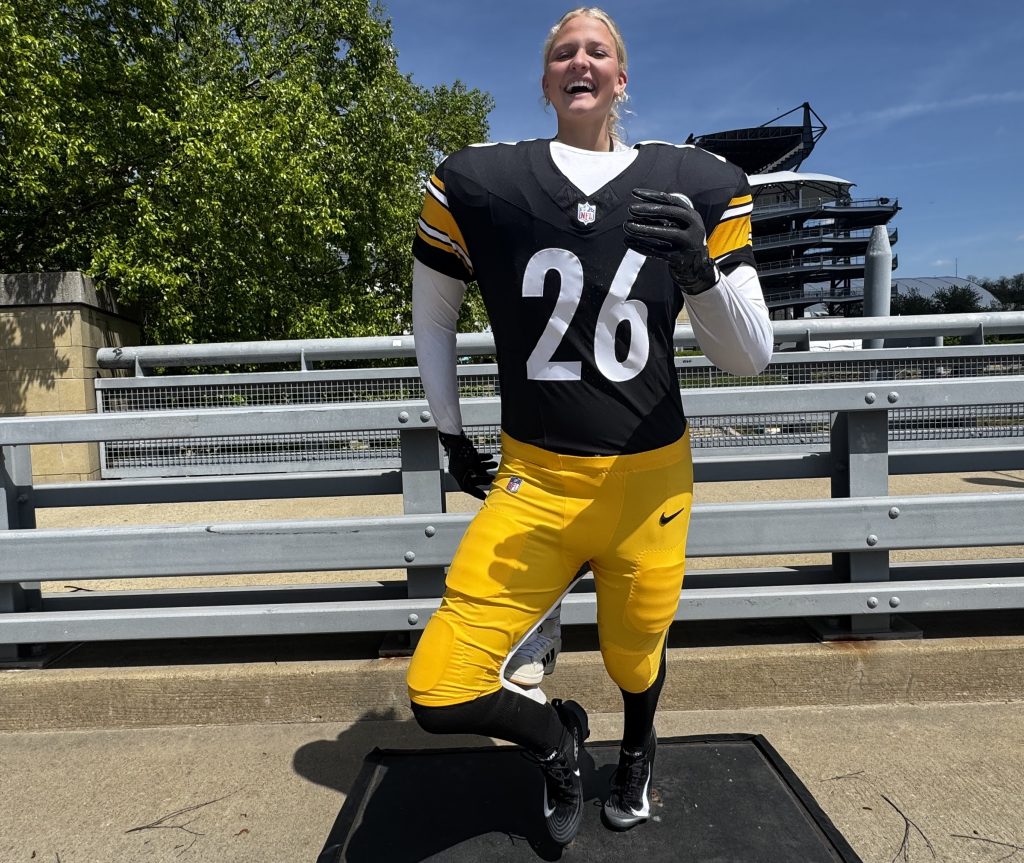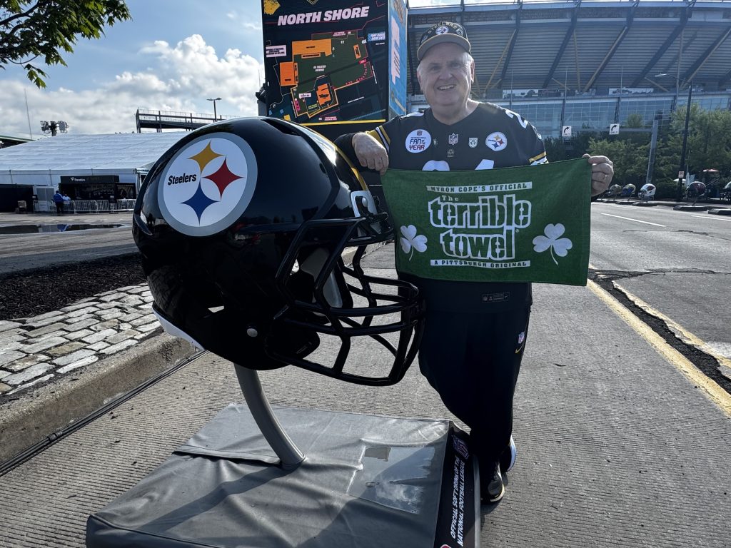 Pittsburgh Steelers' International Fan of the Year Tom McCormack came from Dublin, Ireland, to watch the NFL Draft. McCormack announced the Steelers’ sixth round draft pick last year - Ohio State quarterback Will Howard. [Karen Mansfield]