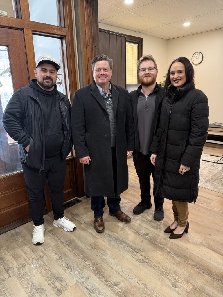 Washington County Commission Chairman Nick Sherman, second from left, and Commissioner Electra Janis stand with Shawn Patrick NairnÄ¢¹½ÊÓÆµ friend, Devin Reed, left, and brother, Regis Nairn, while touring the recovery house in Washington that bears his name.