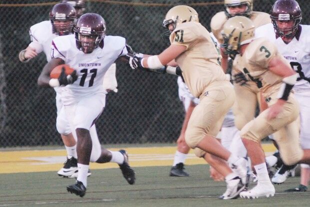 2002 — Bill McLee scored two touchdowns, the second coming on the first play in the fourth quarter, to put Uniontown in front for the first time, as the Red Raiders defeated visiting West Mifflin in a non-conference battle of Class AAA powers. The Titans led 14-7 midway through the second quarter after touchdown runs of 35 yards by Kevin Garner and 55 yards by Matt Peterson, but a fake punt turned the tide UniontownÄ¢¹½ÊÓÆµ way. Quarterback Ryan Guthrie connected with Matt Ciampanelli for a 30-yard gain to West MifflinÄ¢¹½ÊÓÆµ 35-yard line on the play, which led to McLeeÄ¢¹½ÊÓÆµ first TD run of five yards. Corey Rodgers hit a 36-yard field goal to put the Titans back on top in the third quarter before Guthrie and wide receiver Junior Mayes teamed up for a 65-yard pass play that set up McLeeÄ¢¹½ÊÓÆµ deciding score. McLee led the Red Raiders with 57 yards rushing and Guthrie threw for 101 yards.Â