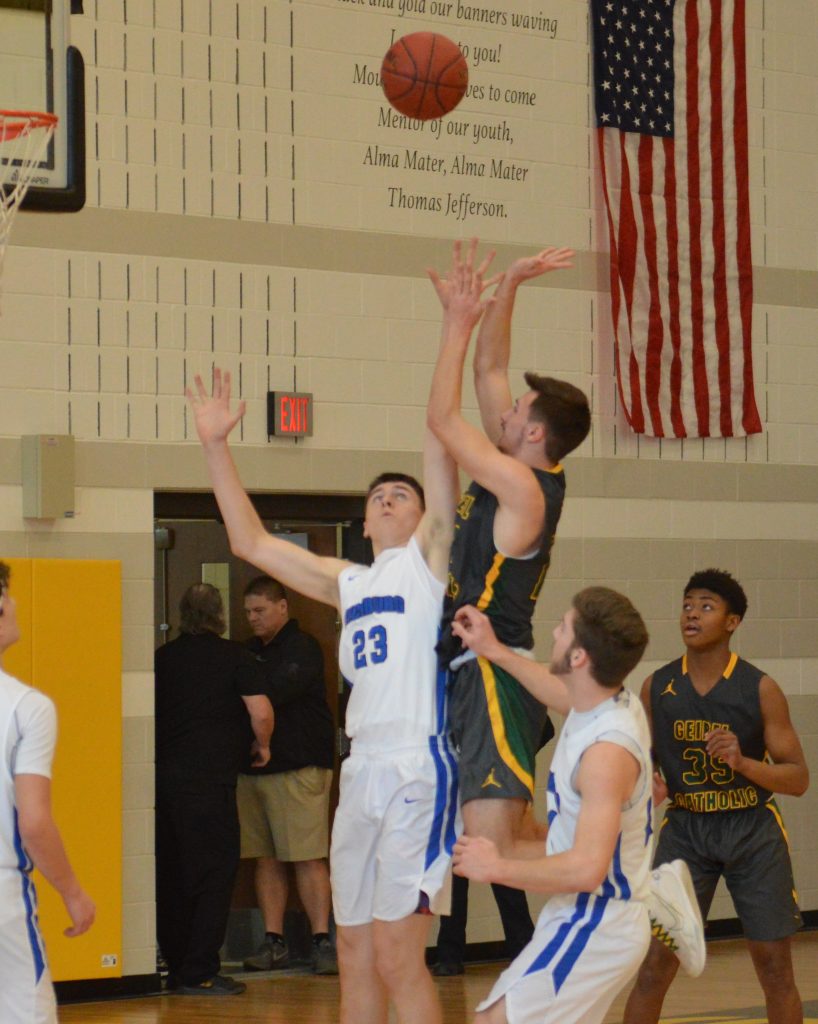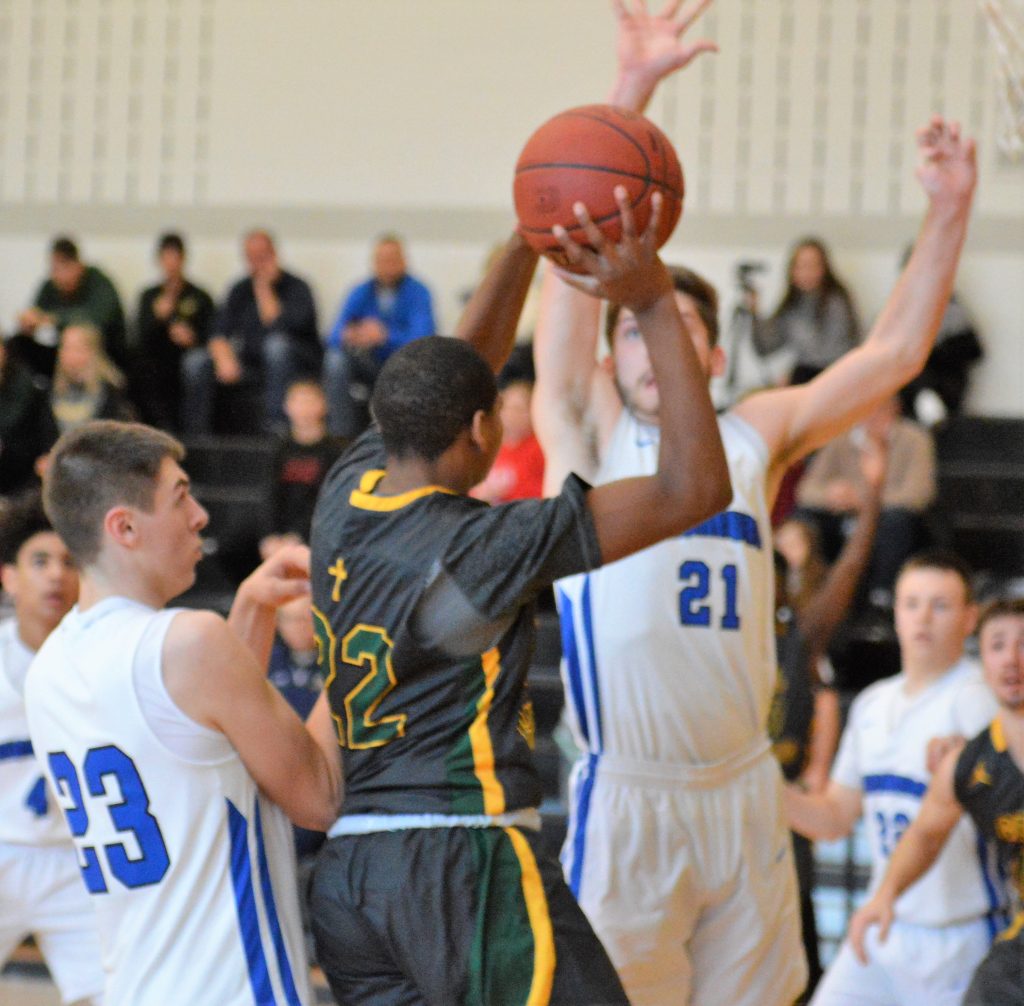 Fetsko hit a 3-pointer to start the final frame. Anderson countered a bucket by the Blue Devils’ Braylan Lovelace with two free throws. Howard responded to a basket by Dylan Cook with an acrobatic lay-up, then made a leaping steal at the other end and fed Fetsko for a lay-in to make it 45-38.