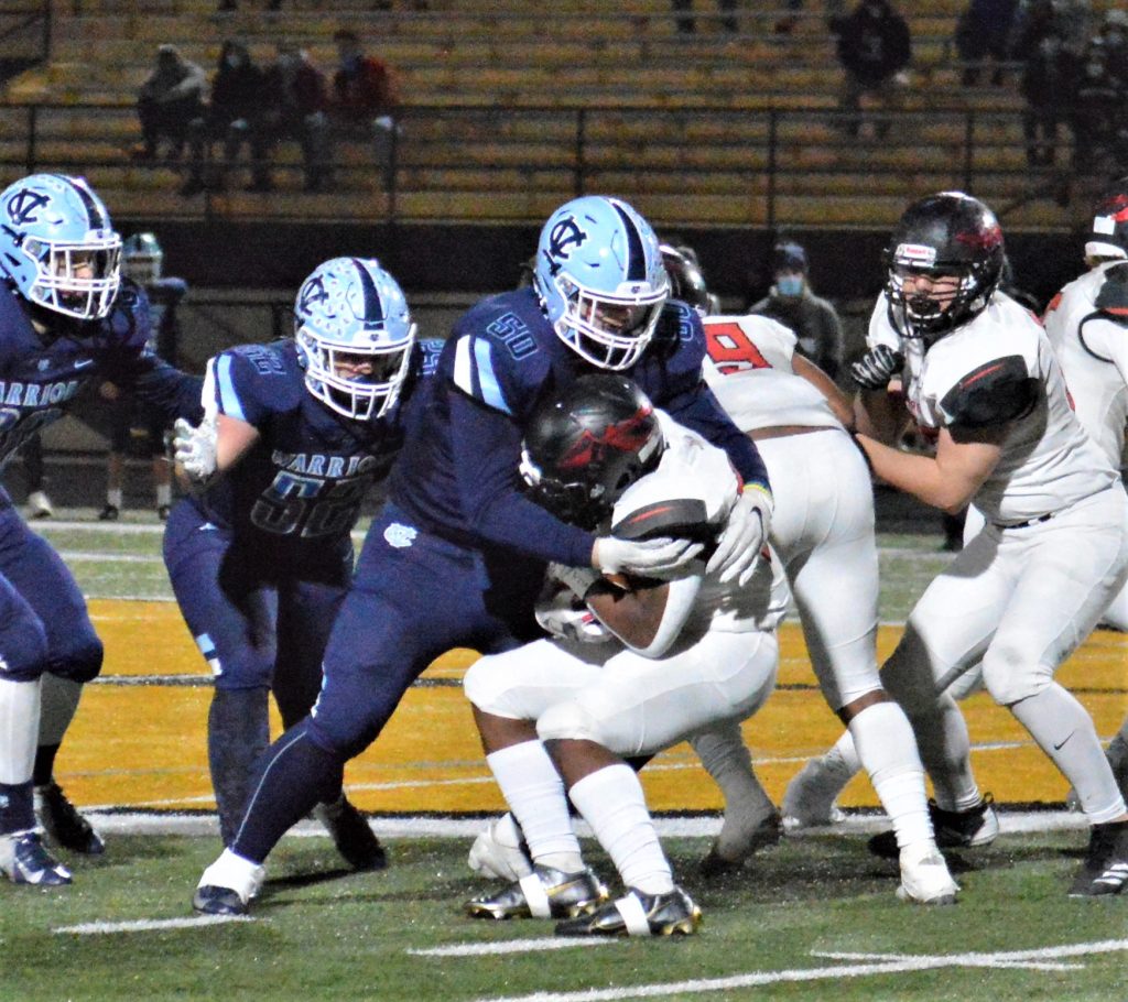 The blue Warriors imposed their will at that point, going on consecutive four-play, 50-plus-yard touchdown drives capped by scintillating Alexander runs of 41 and 31 yards to give CV a commanding 28-0 halftime lead.