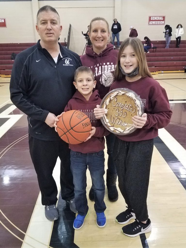 Kezmarsky posed for photos with his team and then with his wife Cortney, daughter Kiley and son JJ to celebrate No. 300.