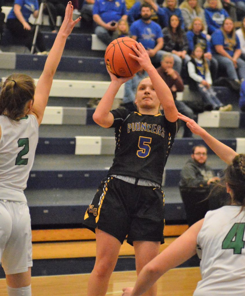 The Lady Pioneers (18-5) held a 24-19 lead late in the second quarter but Portage got a jump shot by Hudak, a 3-pointer and two free throws from Chobany and two foul shots from Wozniak to cap a nine-point run in seizing a 28-24 halftime lead.