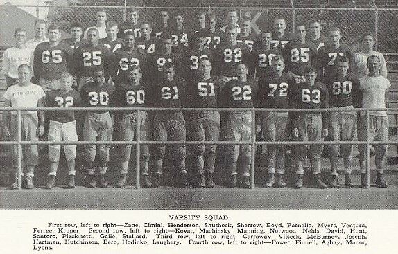 “Machinsky went to Ohio State,” Boyd recalled. “He was a horse, he was about 245 pounds I guess. We had solid backs in Santoro, Manning, Henderson and Gene Farnella. A good end in Billy Hunt.”