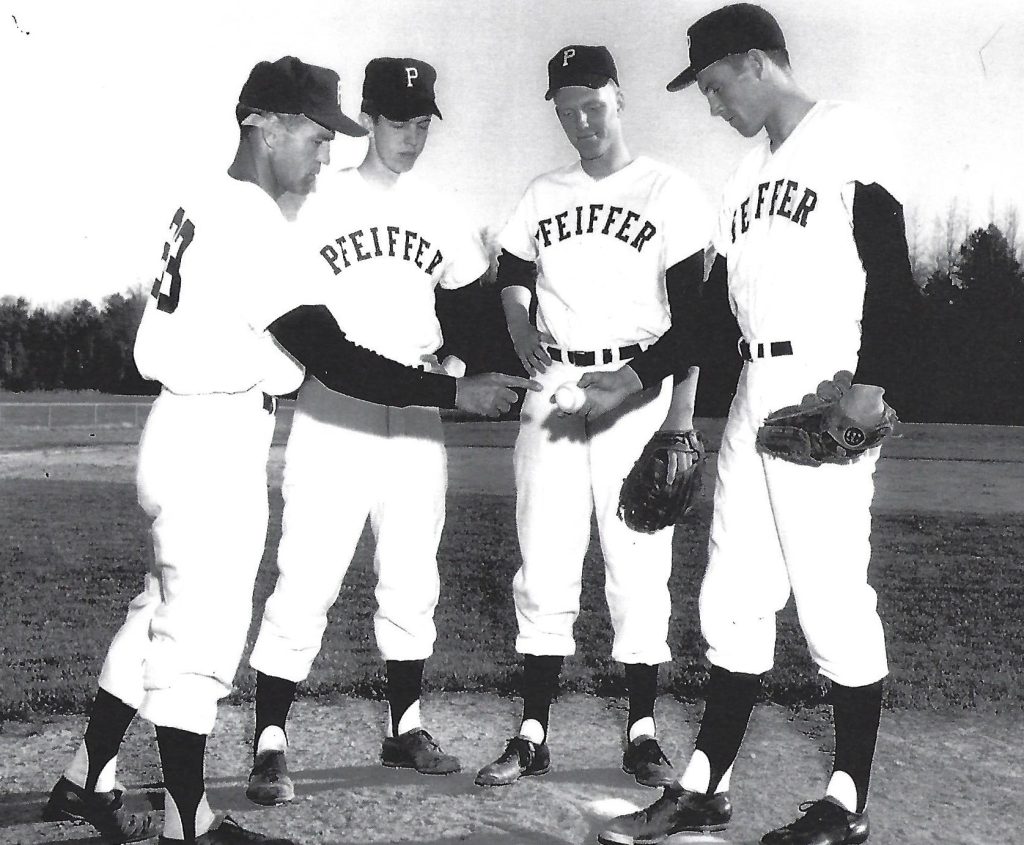 “I got there the end of May and worked out, Coach Maravich said I’d like to have you, but I’ve only got one more scholarship left and he had his eye on a big man. He said there is an excellent small college conference in the Carolinas and he knew a coach and he made a phone call and the coach contacted me and then John Miller, who became a legendary coach at Blackhawk High School, went to Pfeiffer and was finishing up his graduate work. When I worked out with him he recommended me and also told me about the excellent baseball program they had. It was almost like a godsend that I ended up at Pfeiffer.”