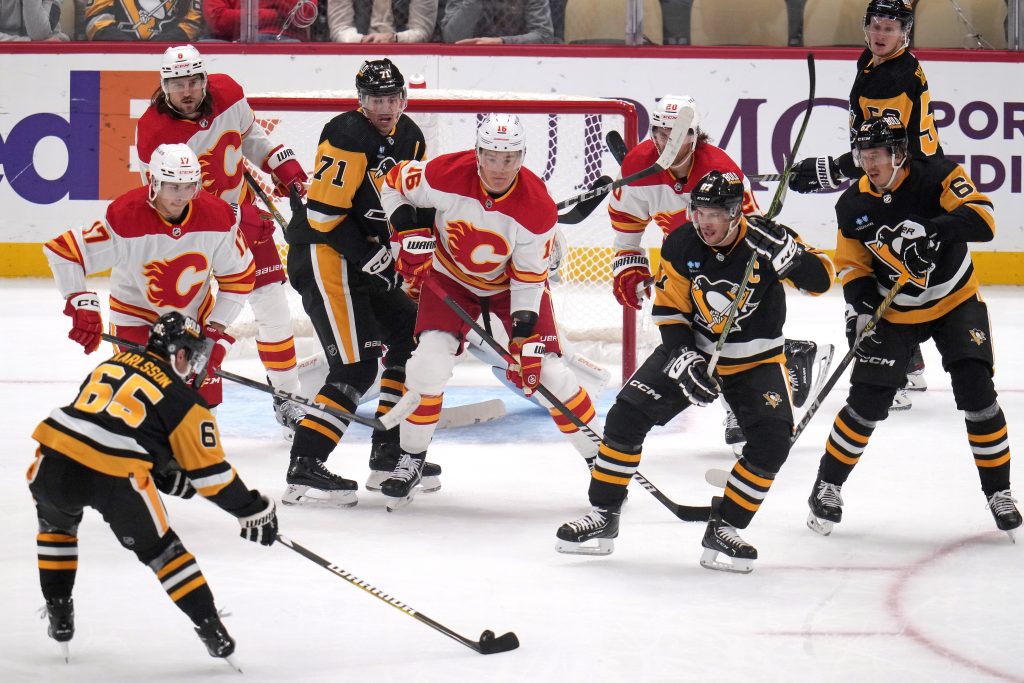 Malkin, Penguins surge past Flames with 5 goals in the third period for a 5-2 win
