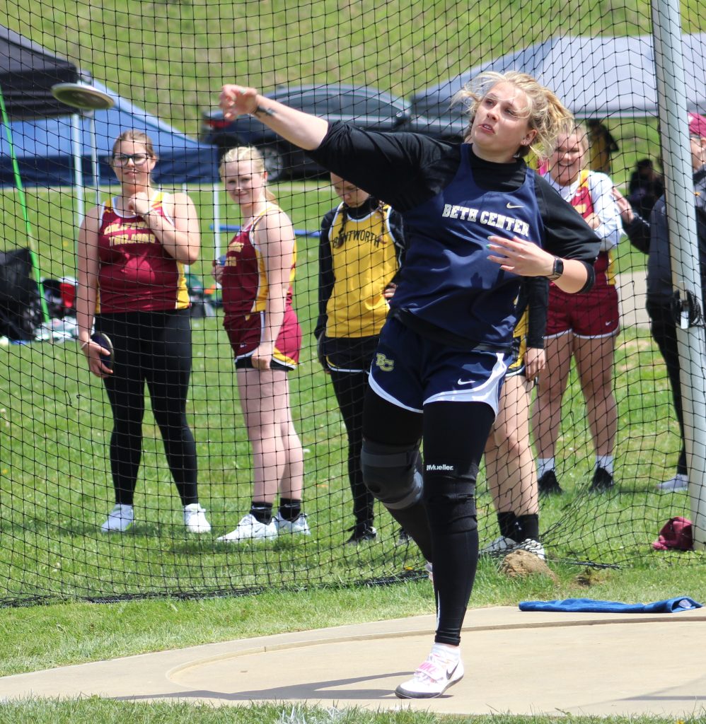 Beth-CenterĢƵ Mackenza Spangler won the discus with a throw of 98 feet. The senior accomplished half of what she hoped to do.