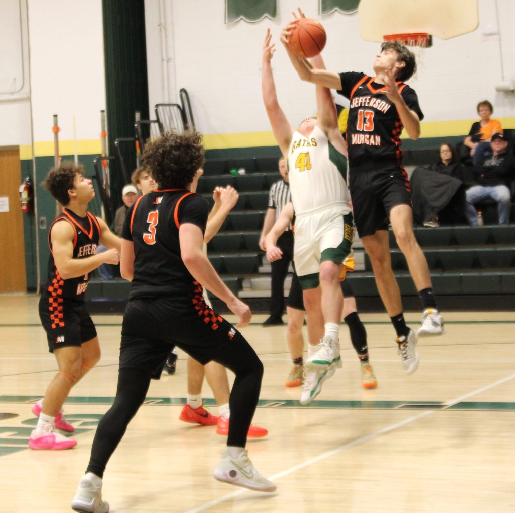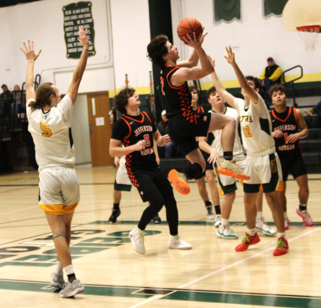 CONNELLSVILLE TWP. — Jefferson-Morgan turned up the full-court pressure in the second quarter and the defense paid dividends for a 70-50 victory at Geibel Catholic Monday night in Section 2-A game.