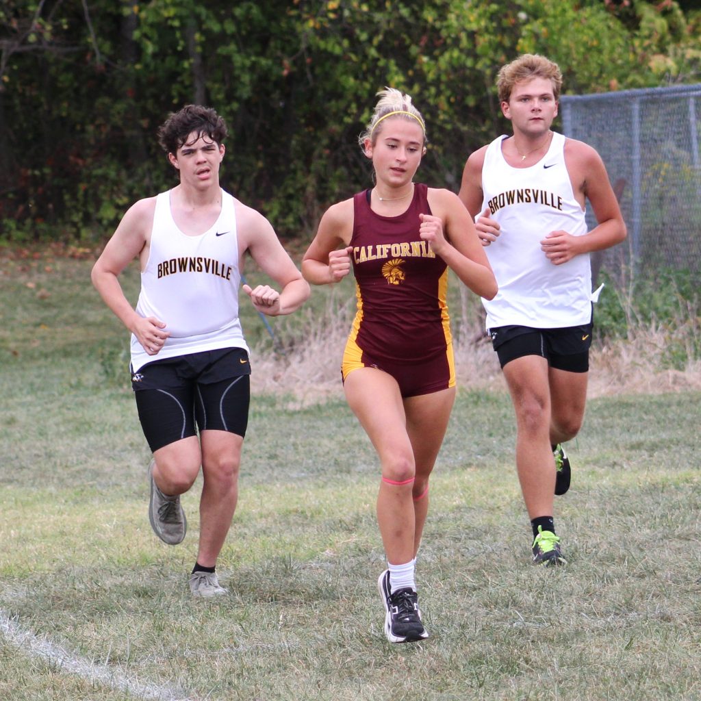 While neither the California nor Brownsville girls had enough runners to score the meet, the Lady Trojans finished 1-2 and Brownsville grabbed third place. Calvary Christian School defeated both teams, 15-50.