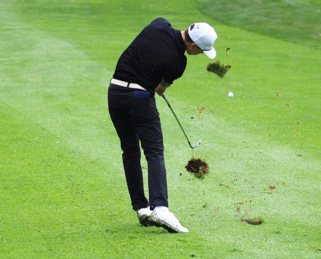 Gross managed to turn a misfortunate tee shot into a par on the eighth hole. His tee shot rolled up a tree and then settled in the roots, creating a unique second shot.