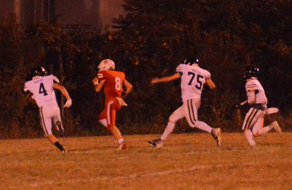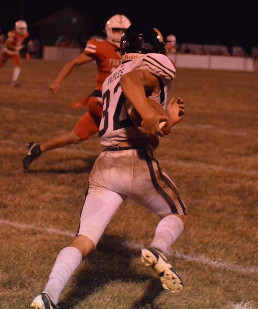 Brock Evans led Mapletown with 13 carries for 61 yards but Maples running back Carson Vanata suffered a third-quarter leg injury that knocked him out of the game.