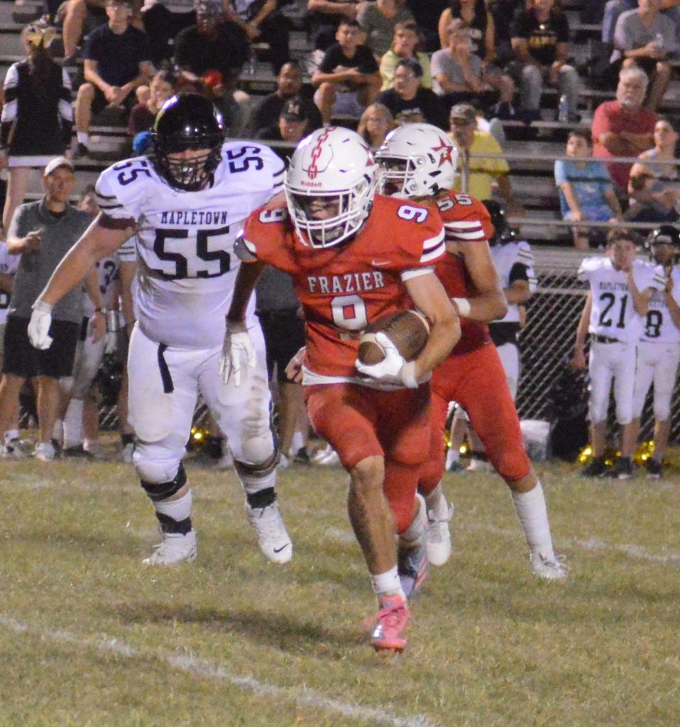 Frazier held Mapletown to 158 yards on the ground and limited quarterback Spencer Yeager to only one completion in five passes, for eight yards to Colton McKnight.