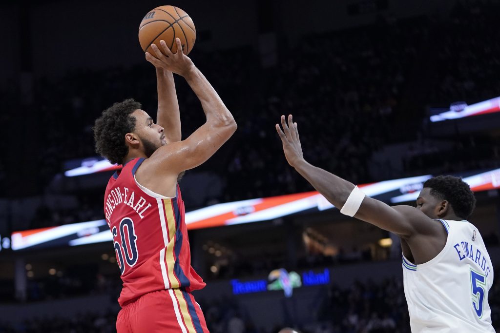 The Timberwolves were 14 of 27 from deep in the first half, making more 3-pointers than New Orleans attempted (12).
