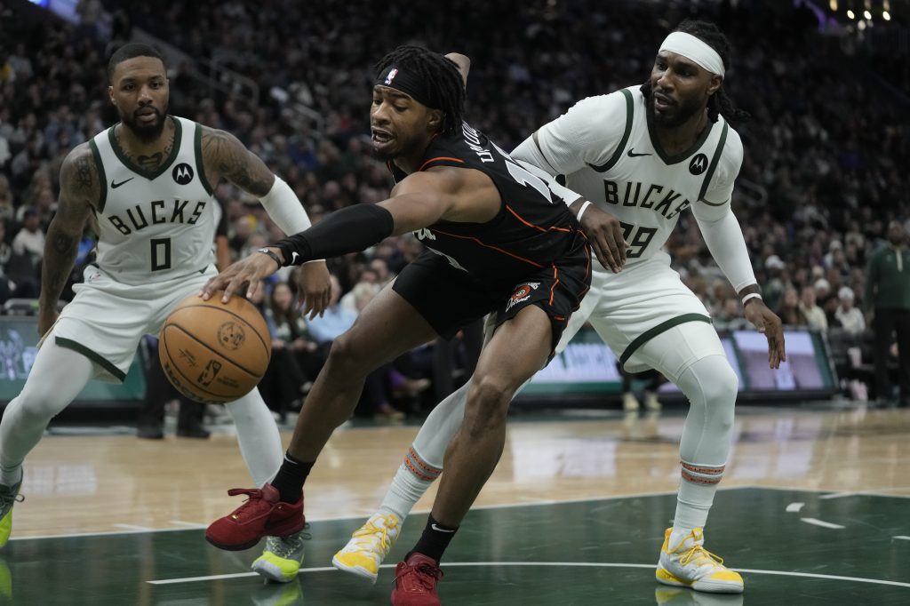 “ItĢƵ another huge night as far as finding a way to win,” Bucks coach Adrian Griffin said. “I thought it was a gusty victory. A lot of guys stepped up.”