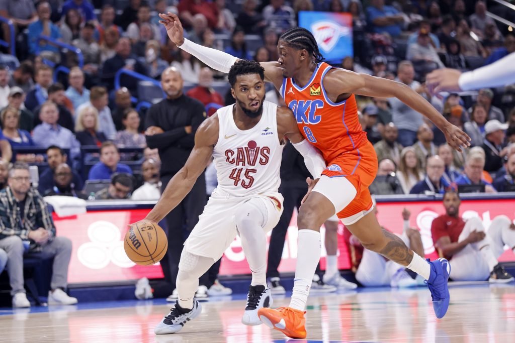 Donovan Mitchell, who entered as the NBAĢƵ leading scorer at 32.5 points per game, was held to 20 on 8-for-23 shooting. He scored 43 points in the first meeting between the teams, a 108-105 win for the Thunder on Oct. 27 in Cleveland.