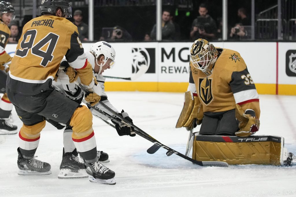 With another power-play opportunity, Dubois beat Hill from the left side of the goal when he tapped home a rebound to push Los Angeles’ lead to 3-0 early in the third.
