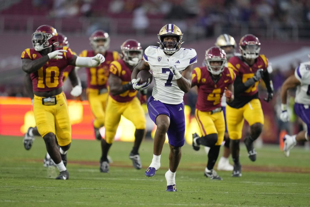 Washington RB Dillon Johnson. The Mississippi State transfer had a career-best game last week to lead the Huskies past USC. He ran 26 times for 256 yards for the fifth most yards in a game in school history. He also ran for four TDs, becoming the first Washington back to do that since Myles Gaskin in 2017. He was the first Pac-12 player in six years to run for at least 250 yards and four TDs in the same game. He also had two carries go for at least 50 yards, including a 52-yard TD.