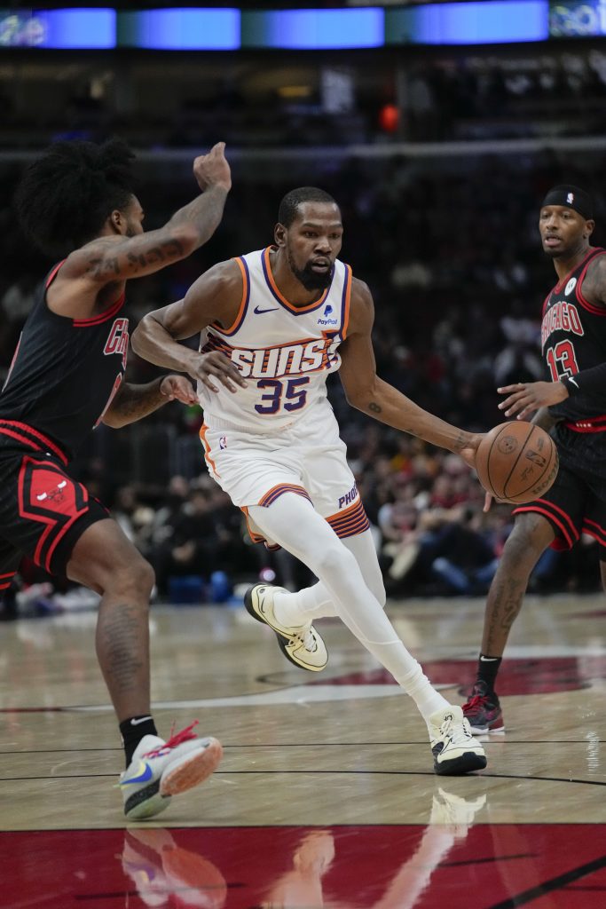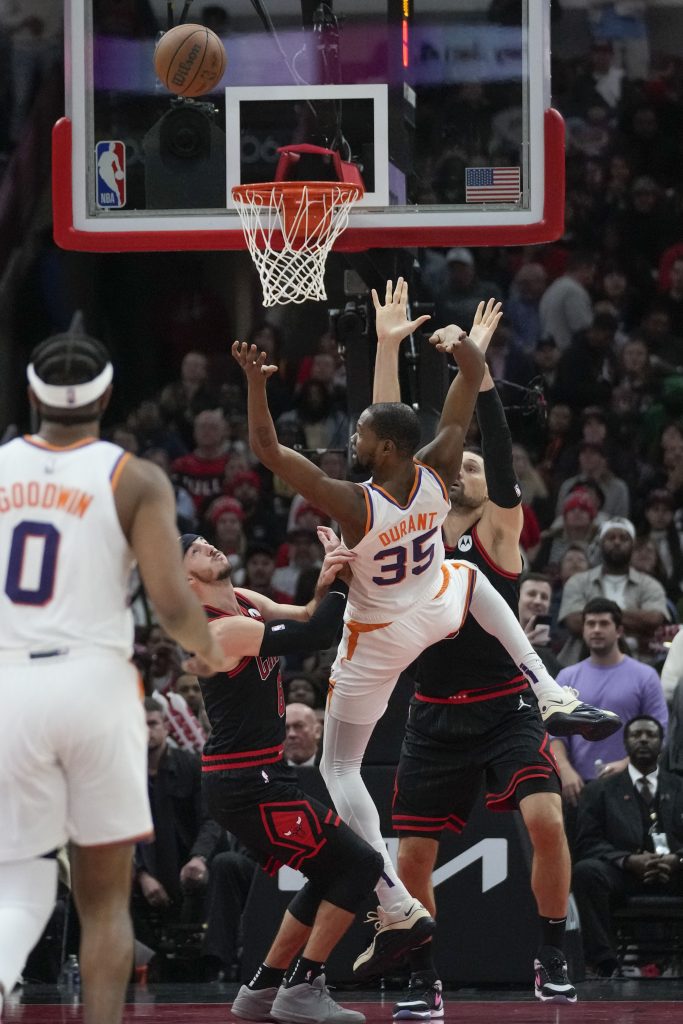 DeRozan tied it at 107 on a layup with 15 seconds left as the Bulls pushed back to set up a wild finish and send it to OT. Durant missed on a last-second shot in regulation as he was defended by Caruso.