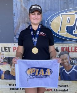 Elizabeth Forward junior Mya Morgan sits atop the leaderboard after the first round of the PIAA Class AAA Individual Golf Championship on Monday at Penn State UniversityÄ¢¹½ÊÓÆµ White course.