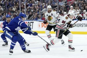 TORONTO (AP) — Corey Perry, Tyler Johnson and MacKenzie Entwistle scored in the second period, and the Chicago Blackhawks beat the Toronto Maple Leafs 4-1 on Monday night.Taylor Raddysh added an empty-netter for Chicago (2-2-0), and Arvid Soderblom made 34 stops. Andreas Athanasiou had two ...