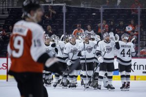 PHILADELPHIA (AP) — Cam Talbot made 24 saves in his first shutout of the season, and the Los Angeles Kings beat the Philadelphia Flyers 5-0 on Saturday night to extend their point streak to six games.Los Angeles got off to a fast start behind Adrian Kempe and Anze Kopitar, who scored 18 ...