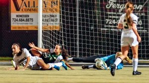 ROSTRAVER TWP. — After a scoreless first half, Izzy Laurita recorded a hat trick to lead Section 2-AAA-leading Belle Vernon to a 4-0 win over visiting Ringgold.“Ringgold has a nice team and came out, and played us hard,” said Belle Vernon coach Tom Cameron. “I think they went to a 4-5-1 ...