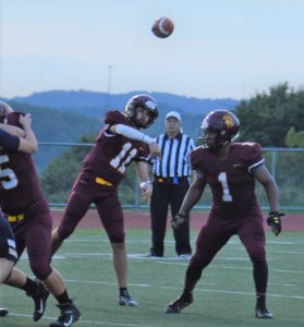 Jared Johnson scored three touchdowns and McGuffey wrapped up the outright Class AA Century Conference championship Friday night with a 48-20 win over Beth-Center.Johnson scored on two one-yard runs and caught a 50-yard pass from quarterback Rocco Falosk.Kyle Brookman, McKinley Whipkey, Phillip ...