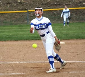 Ava Clark tossed a perfect game and reached 300 strikeouts after striking out nine in the Lady Falcons' 15-0 non-section victory Tuesday over visiting Monessen.