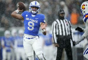 FORT COLLINS, Colorado (AP) — Zac Larrier scored the go-ahead touchdown on a 1-yard run in the third quarter, punctuating a drive aided by an unsportsmanlike conduct penalty on the Colorado State bench because of fans pelting the visiting Falcons’ sideline with snowballs, and No. 19 Air ...