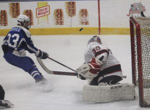 ROSTRAVER TWP. — Elizabeth ForwardĢƵ Luke Napoli beat Connellsville goalie Alex Mitchell in the sixth round of the shootout to lift the Warriors to a 6-5 victory Monday night at Rostraver Ice Garden.Napoli deked Mitchell to move the goalie right and then slipped the puck across his body to ...