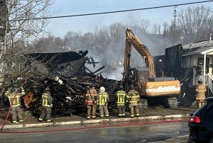 One person was killed following a fire and explosion Friday morning that destroyed one house in Connellsville and heavily damaged two neighboring homes.