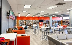 The space was bright and modern, filled with funky modular furniture and flat screen TVs, but it was the exercise bikes, two pieces of sleek gym equipment set against a stack of bookshelves, that stuck out.