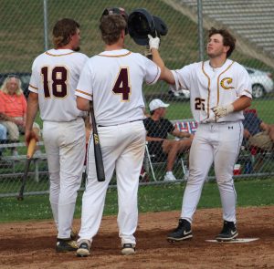 CARMICHAELS – Carmichaels scored four runs in the bottom of the sixth inning Sunday and staved off elimination with a 12-8 victory over visiting M&R Transit in Game 3 of the Fayette County Baseball League championship series.