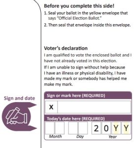 A recent directive from the state Department of State requiring counties to print the entire year where voters must write the date on the exterior of their mail-in ballots is forcing elections offices to scramble to order new envelopes before the November election.